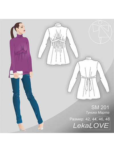 Туника прилегающего силуэта с расклешением книзу. Длина по спинке 64см. Прибавка на свободу облегания 0см.